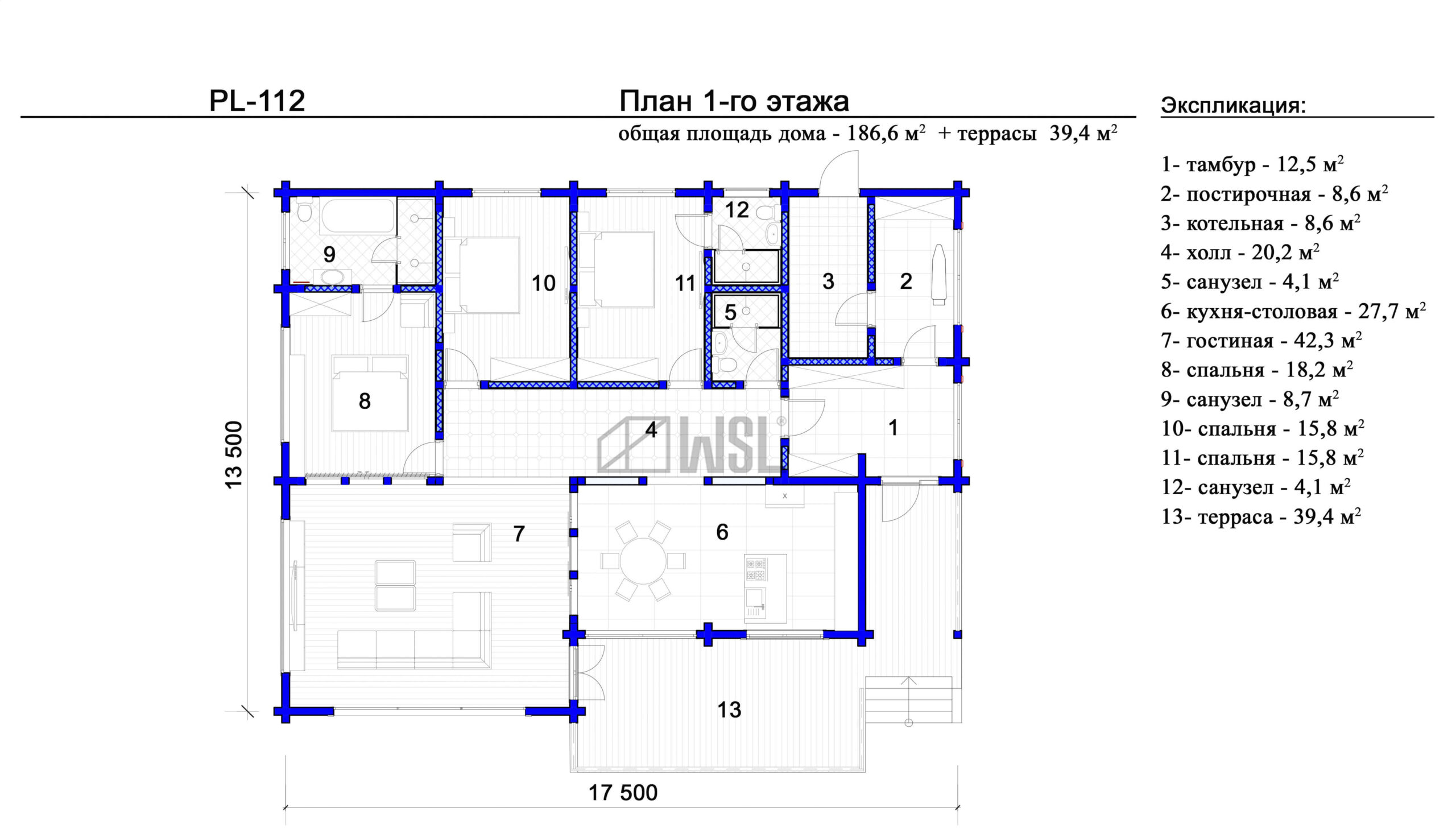 Площадь дома — 186,6 м2